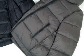 Piumino con imbottitura ecologica a motivo orizzontale e chiusura a zip disponibile in blu, marrone e nero dalla tg. S alla tg. XL