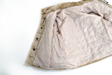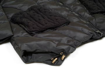 Cappottino imbottito in vera piuma con particolari rifiniti in maglia di lana e cappuccio in pelliccia murmasky Proposto nei colori avorio e nero dalla tg M alla tg 3XL (alcune taglie a numero ridotto)