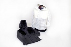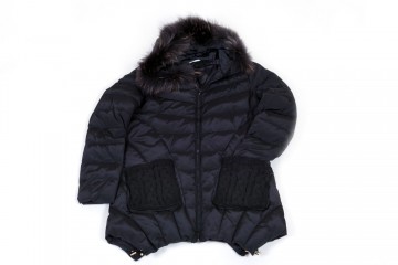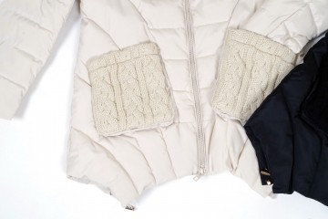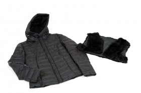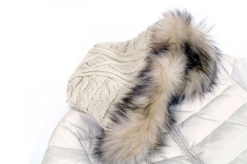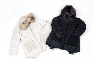 Cappottino imbottito in vera piuma con particolari rifiniti in maglia di lana e cappuccio in pelliccia murmasky Proposto nei colori avorio e nero dalla tg M alla tg 3XL (alcune taglie a numero ridotto)