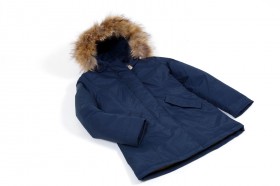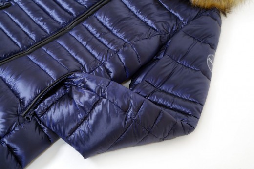 Parka lungo in vera piuma e cappuccio rifinito in pelliccia murmasky dalla tg S alla tg L in colore blu
