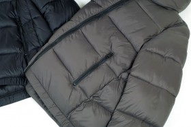 Piumino con imbottitura ecologica a motivo orizzontale e chiusura a zip disponibile in blu, marrone e nero dalla tg. S alla tg. XL