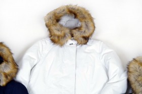 Parka lungo eco-imbottito e finitura del cappuccio in pelliccia ecologica disponibile nei colori bianco, blu e nero dalla tg S alla tg 2XL