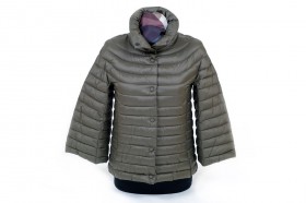 Giacchino geometrico stile “audrey” con eco-imbottitura a disegno orizzontale e manica tre-quarti nei colori verde militare, blu, nero dalla tg XS alla tg XL