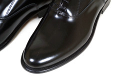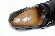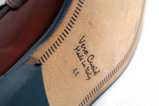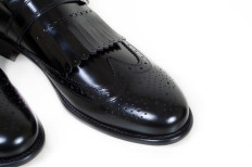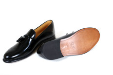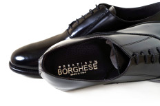 English Style stringato, con suola in cuoio, in pelle lucida o lavorate con raffinate rifiniture in diverse colorazioni: nero, testa di moro, marrone, cuoio e blu abrasivato.