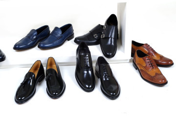 Nuovo lotto di calzature in pelle e cuoio da uomo prodotte in Italia, asseriate dal n° 40 al n° 45 e disponibili in vari modelli (stringate, mocassino, polacchine)