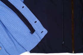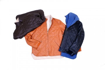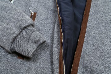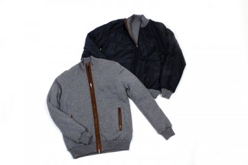 Giubbini reversibili in misto cashmere e, all’interno, tessuto shell  impermeabile con chiusura aq zip e finiture in pelle scamosciata