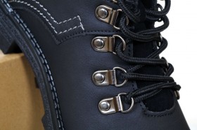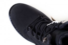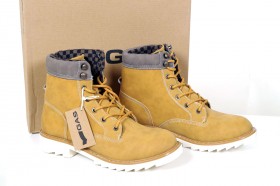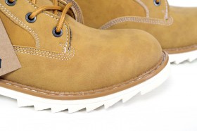 Scarponcini alti con allacciatura ad occhiello, caviglia rinforzata e comodamente imbottita, suola in gomma armata antiscivolo, completamente foderata e sottopiede interno in lattice traspirante Proposti in due colori: total black e lion (giallo sabbia)