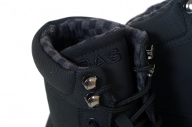 Scarponcini medi con allacciatura a gancio, caviglia rinforzata e imbottita, suola in gomma armata antiscivolo, fodera interna quadrettata e soletta in lattice traspirante Proposti in due colori : total black e fango con caviglia marrone