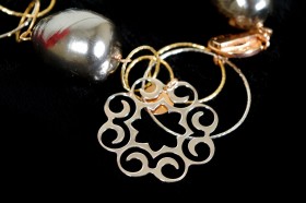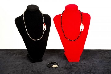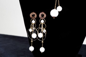 Continua l’assortimento degli articoli d’alta bigiotteria realizzati in argento e rifiniti in galvanica d’oro giallo e rosa  Assortimento di collezioni e modelli decorati con pietre naturali, perle di fiume e quarzi colorati