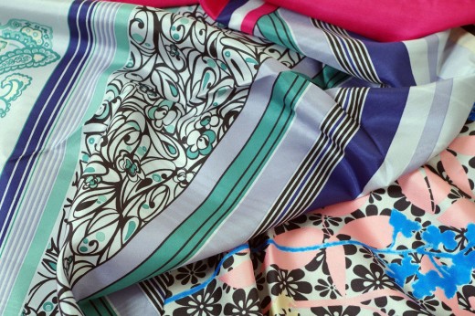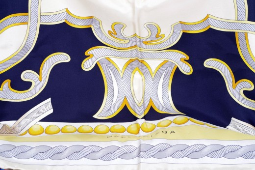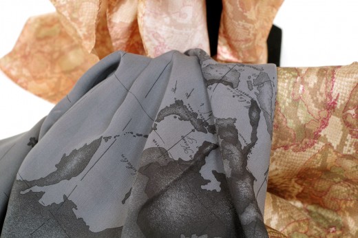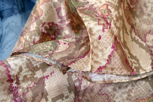 Alviero Martini 1° Classe :  foulard 90×90, stole 45×160 e sciarpine in varie misure 100% seta dalla classica fantasia a mappamondo e colori tipici della firma