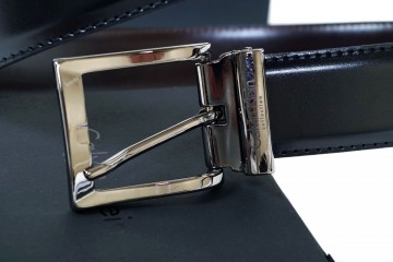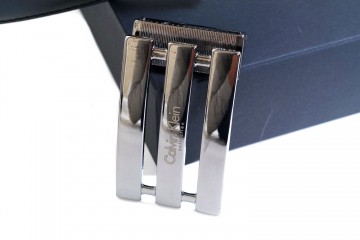 Nuovo lotto di cinture da uomo firmate Calvin Klein Cinque differenti fibbie che caratterizzano una cintura in pelle nera che, reversibile, diventa pelle testa di moro
