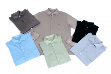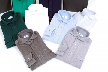 Camicie 100 % cashmere (ultimi articoli nelle taglie 54 e 56) Morbido e caldo filato di cashmere proposto in un modello camicia con collo alla francese e vestibilità slim Tinte unite tenui e classiche : avorio, castagna, fango, grigio chiaro, azzurro e nero