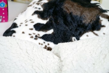 Calda e confortevole coperta da divano a fantasie animalier ed interno agnellato cm 130×160