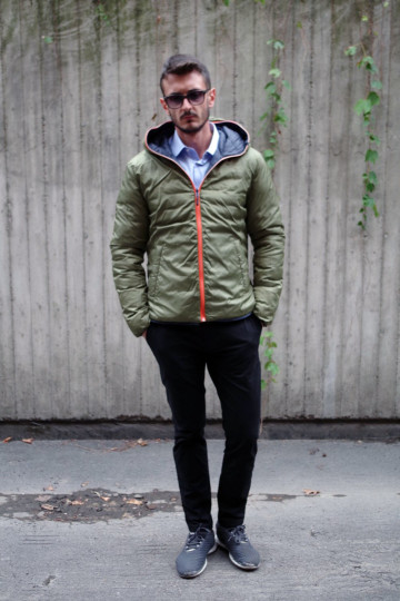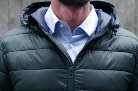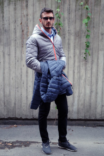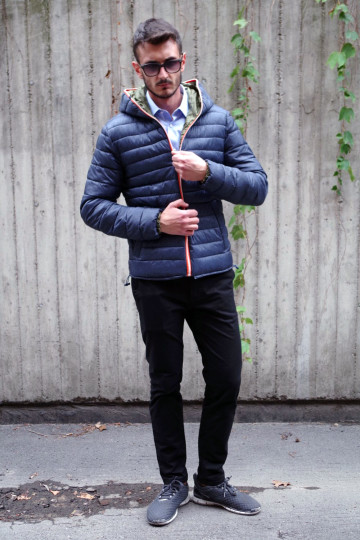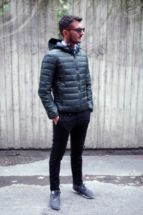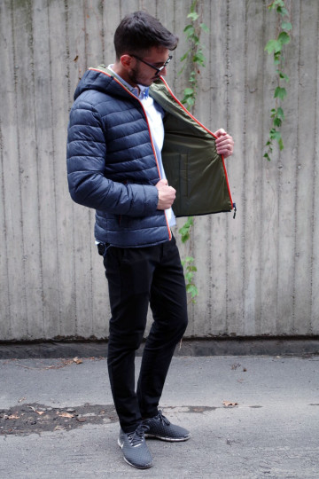 Giubbotto in tessuto shell mat tinto a freddo (blu melange reversibile in verde salvia, blu melange reversibile blu, blu melange reversibile grigio) con zip a contrasto Imbottitura orizzontale e taglio regular dalla tg M alla tg 2XL