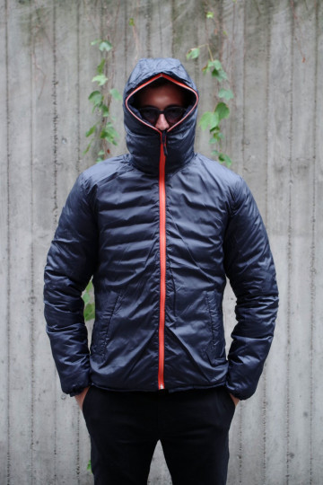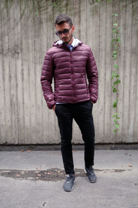 Bomber in tessuto shell tinta unita con contrasto nella fodera del cappuccio (blu/grigio nero/grigio verde bottiglia/blu grigio chiaro/azzurro bluette/grigio prugna/grigio verde chiaro/grigio) Imbottitura orizzontale e taglio slim