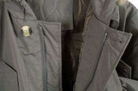 Parka in tessuto shell opaco con imbottitura ecologica e cappuccio rifinito in vero pelo murmasky staccabile, disponibile in grigio scuro, beige, verde militare, blu e nero