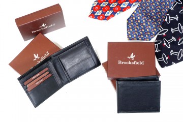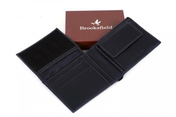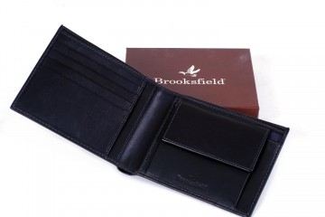 Portafogli in pelle firmati Brooksfield con portamonete o vano portadocumenti e taschine riponi carte di credito (pelle nera granata o liscia)