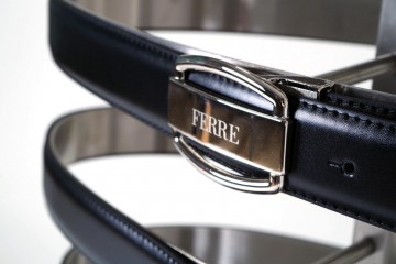 Cinture in pelle stile classico adatte ai completi giacca e pantaloni e ad un outfit elegante Firmate GF. Ferrè e realizzate in pelle made in Italy sono proposte in abbinamento a 8 diverse fibbie con meccanismo reversibile : ogni singola cintura può all’occorrenza essere indossata in nero o in marrone testa di moro