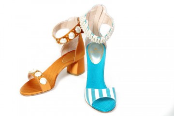 Sandali in vari modelli e colori (in prevalenza n°37) realizzati in pelle scamosciata o velluto di cotone con suola in cuoio, impreziositi da punti luce gioiello, perle, nappine e frange di seta