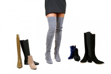 Stivali in diversi modelli : stivali cuissardes invernali che fasciano sensualmente tutta la gamba realizzati in pelle scamosciata o nappa semilucida stivali a gambale invernali realizzati in pelle lucida o scamosciata e inserto elastico a tutta altezza tronchetti sia invernali che estivi realizzati in pelle in vari modelli (articoli a numero ridotto)
