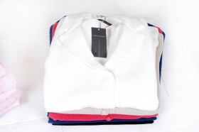 Maglioncini a manica lunga con collo tondo, collo a barca o cardigan 100% maglia di cotone in tinta unita o bicolor