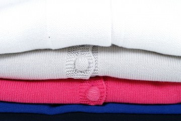 Polo manica lunga o mezza manica in piquet di cotone, cotone pettinato, misto seta e nylon nella collezione “golf” Tinta unita (bianco, grigio, perla, nero, con decori glitter stampati o ricami) e fantasie rigate o bicolor (bianco/turchese, bianco/rosa, bianco/blu, verde/rosa)