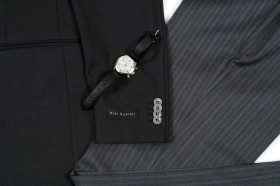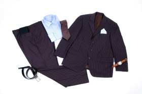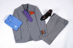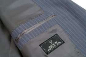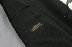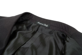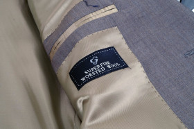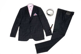 Riassortimento di abiti in fresco di lana adatti alle stagioni più calde e asseriati nelle taglie e nelle vestibilità Tinte unite opache e classiche per la vita professionale e la mezza sera (nero, antracite, blu scuro, marrone, grigio), lievi gessati millerighe o gessati classici con colori a contrasto, tessuti lucidi e semilucidi in tinta unita (nero, blu notte, blu brillante) o con trame a rilievo tono su tono per gli abiti da cerimonia (articoli a numero ridotto)