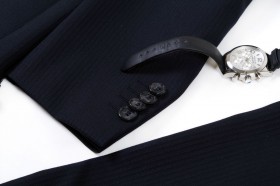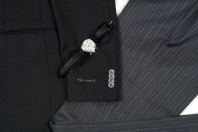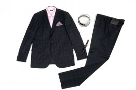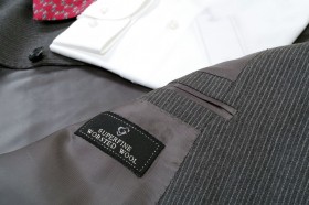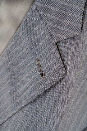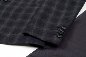 Riassortimento di abiti in fresco di lana adatti alle stagioni più calde e asseriati nelle taglie e nelle vestibilità Tinte unite opache e classiche per la vita professionale e la mezza sera (nero, antracite, blu scuro, marrone, grigio), lievi gessati millerighe o gessati classici con colori a contrasto, tessuti lucidi e semilucidi in tinta unita (nero, blu notte, blu brillante) o con trame a rilievo tono su tono per gli abiti da cerimonia (articoli a numero ridotto)