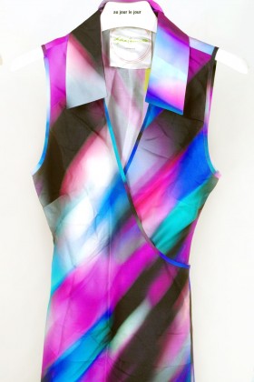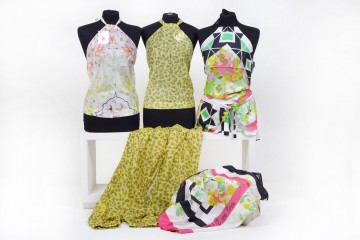 Pura seta, colori brillanti, fantasie anni ’70 e femminilità sono le caratteristiche che si fondono in questi capi estremamente allegri e adatti anche ad occasioni speciali Vestibilità morbide, sovrapposizioni di filati, giochi di colore e di diversi tessuti rendono ogni singolo capo unico e facilmente abbinabile a qualsiasi tinta unita