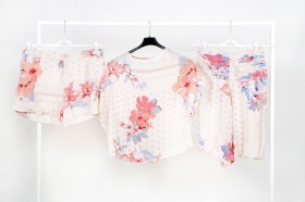Completi composti da canotta o camicia e longuette, gonna o short in pura seta o misto seta in tenui fantasie pastello per le occasioni speciali