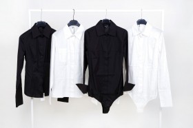 Pratiche camicie in cotone (bianco e nero) anche modello body adatte come sottogiacca, impeccabili nella linea e nella vestibilità