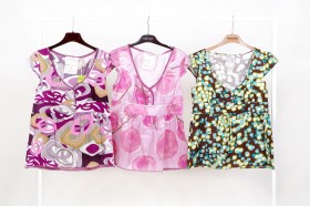 Camicie in voile di seta, top e abiti in colori pastello e fantasie fiorate