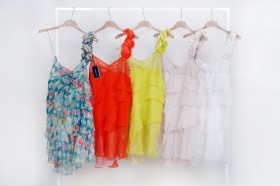 Capi d’abbigliamento primaverili ed estivi in seta, misto seta, georgette di cotone e filati misti Abiti a manica lunga, mezza manica o a spallina sottile, gonne in organza di seta, giacchini a trapezio o taglio bomber