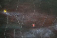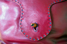 CORALLO, RUBINO, BORDEAUX cuoio strutturato rigido spesso 3 mm, cuoio lavorato ad effetto pergamena, cuoio intrecciato, invecchiato, spruzzato e spazzolato, morbida pelle nappata, con impunture in fili di canapa in toni a contrasto o code di topo in cuoio tono su tono
