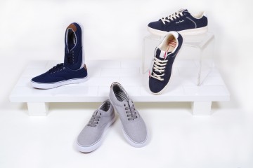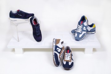 Pierre Cardin: asseriate nei numeri e in vari modelli, scarpe per lo sport e il tempo libero realizzate in pelle o tela con inserti scamosciati e suole in gomma anti-sdrucciolo. Colori in tinta unita o bicolore