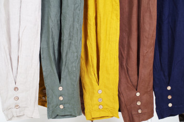 Pantaloni in lino con elastico e coulisse in vita dal taglio morbido in tre modelli e vari colori