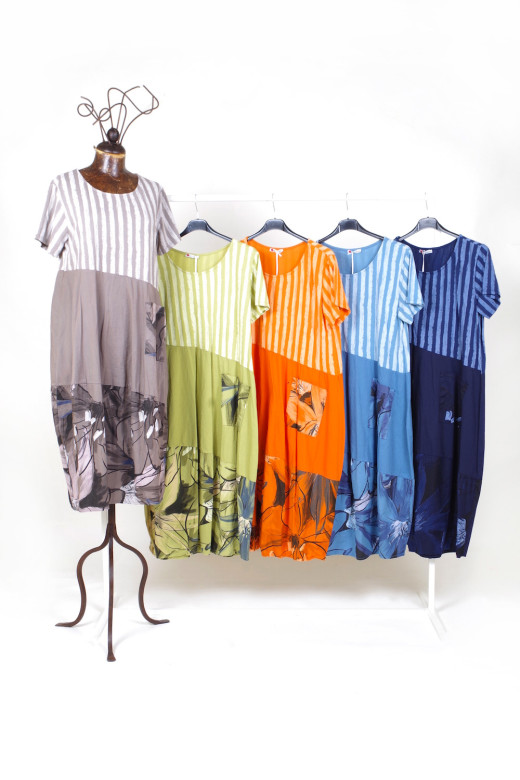 Continua l’assortimento di freschissimi capi d’abbigliamento dalla vestibilità morbida e particolarmente confortevole: abiti, casacche, bluse, camicette e pantaloni in lino e cotone confezionati in Italia (possibilità di riassortimenti settimanali fino ad esaurimento beni)