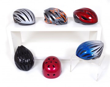 Assortimento di caschi per bici X-TECH in cinque modelli di vari colori e disponibili dalal tg S alla tg XL Eccetto il modello BMX I caschi sono dotati di visierina amovibile e facilmente intercambiabile