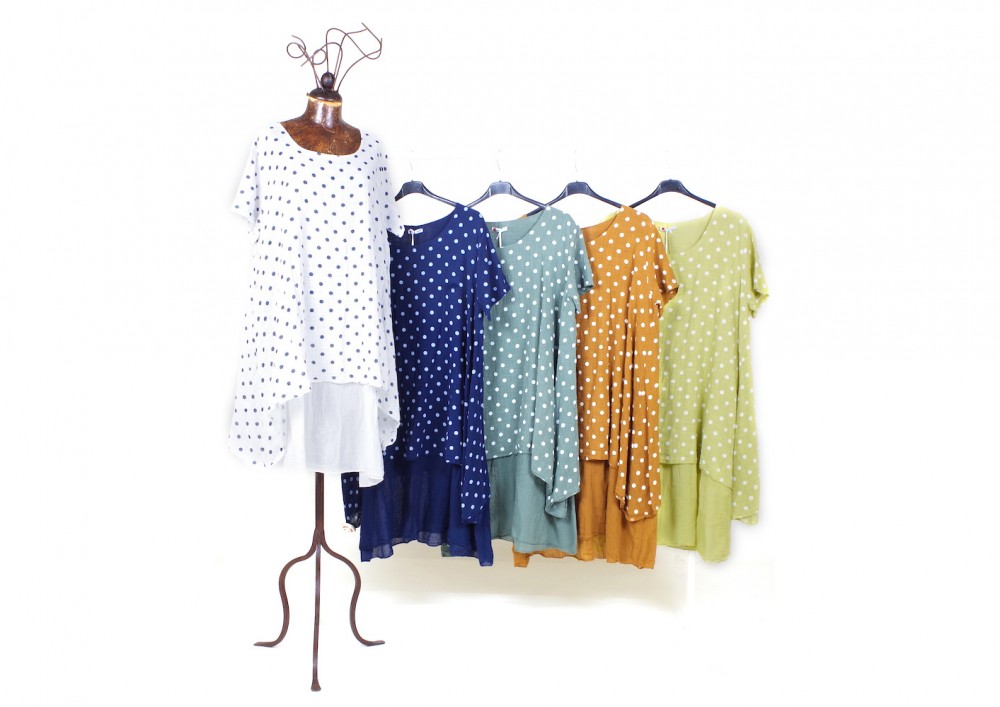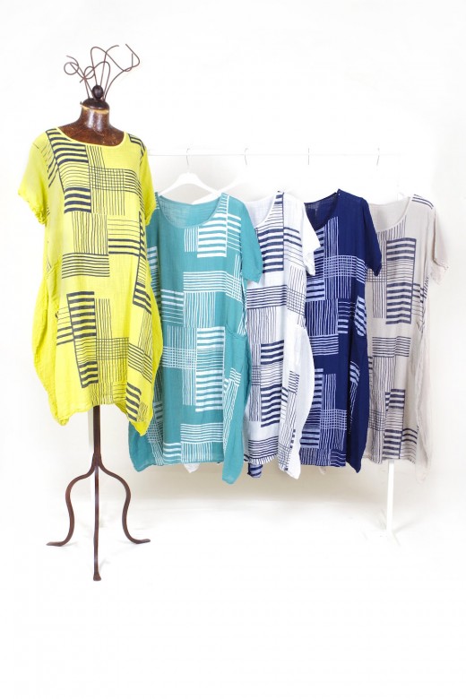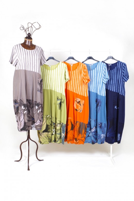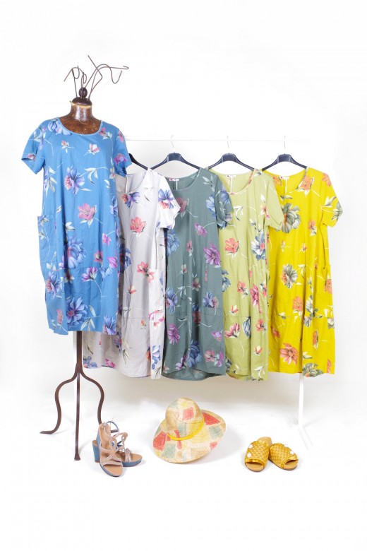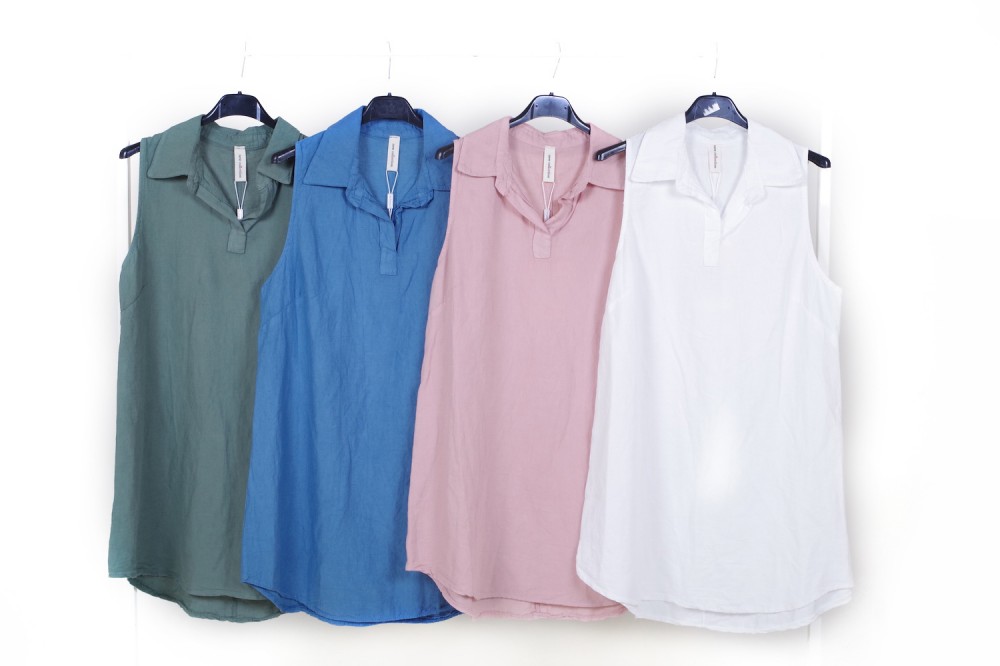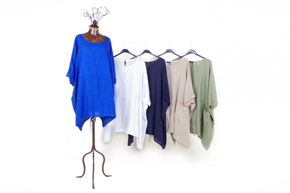 Continua l’assortimento di freschissimi capi d’abbigliamento dalla vestibilità morbida e particolarmente confortevole: abiti, casacche, bluse, camicette e pantaloni in lino e cotone confezionati in Italia (possibilità di riassortimenti settimanali fino ad esaurimento beni)