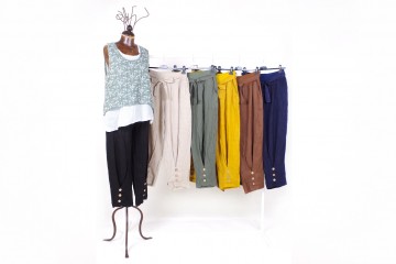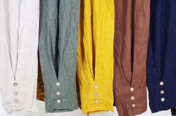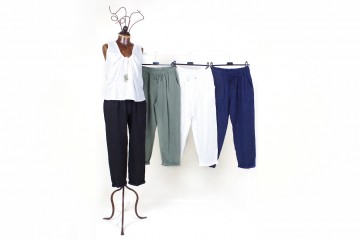 Pantaloni in lino con elastico e coulisse in vita dal taglio morbido in tre modelli e vari colori