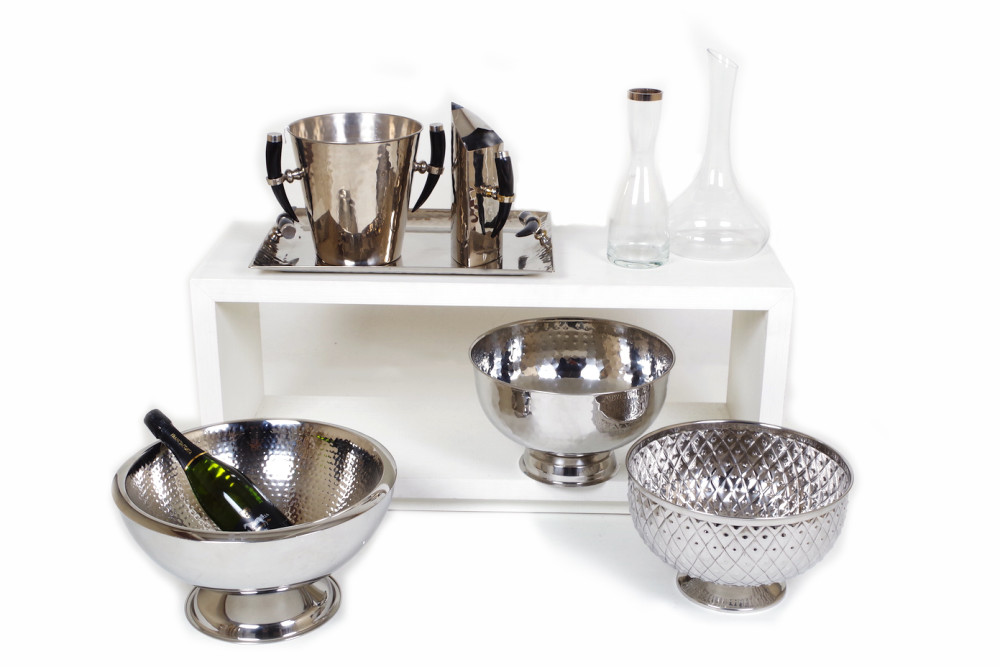 Accessori per la casa, la cucina e per intrattenere i propri ospiti sia in casa che all’aperto: vassoi, tavoli per cocktail, punch-bowl, alzatine per dolci, bottiglie e decanter per vini e liquori in varie finiture e dimensioni ma sempre pezzi unici e di classe