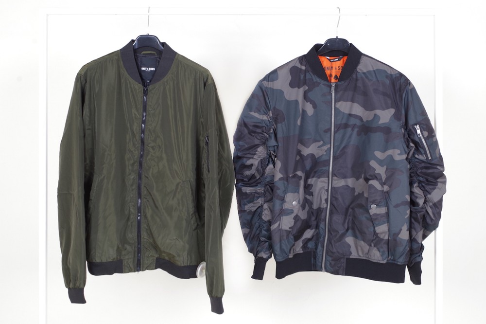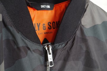 Bomber foderati con eco-imbottitura, fascia in maglia elastica ai polsi e in vita e zip a tutta altezza. Proposti in due colori: verde foresta tinta unita e cammouflage