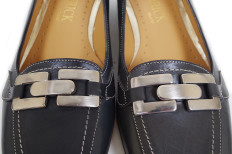Comode decolletè con tacco di due o tre cm: modelli classici tinta unita o bicolore con decori metallici a forma di fibbia o nappina di pelle