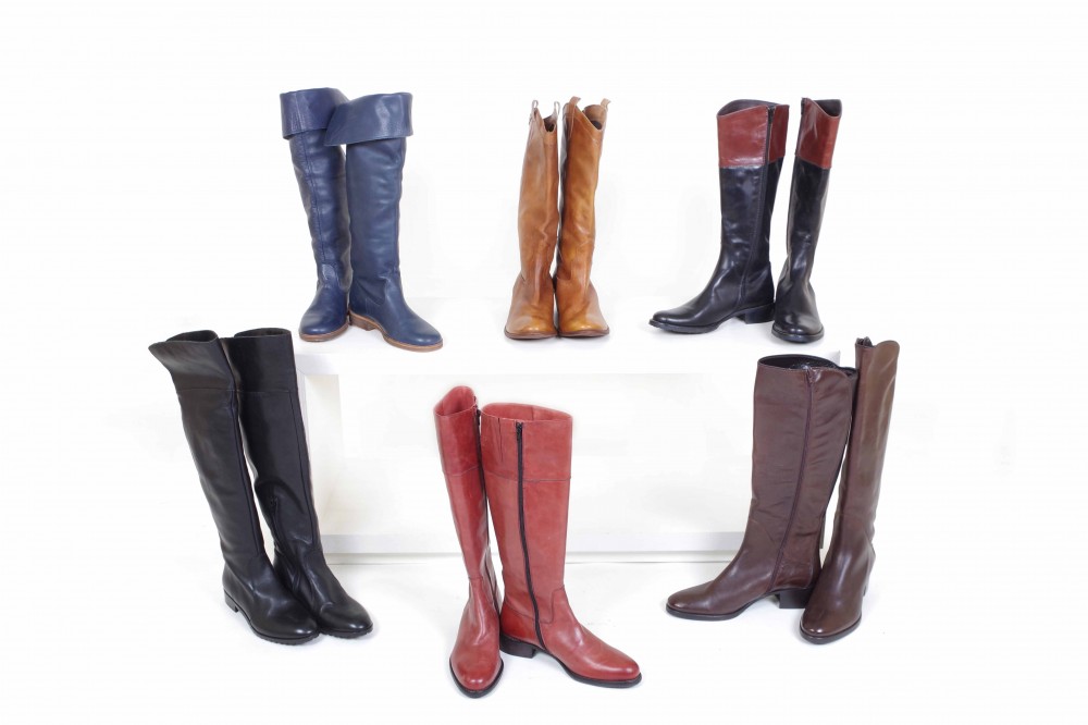 Lotto di calzature autunno-inverno per Signora realizzate in pelle lucida o scamosciata, cuoio, pelo di montone e disponibili in tantissimi modelli disassortiti di varie misure: ballerine, mocassino, polacche, tronchetti, stivali
