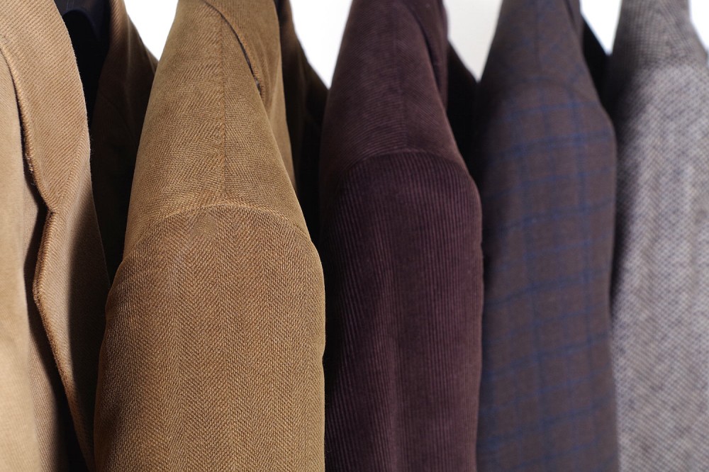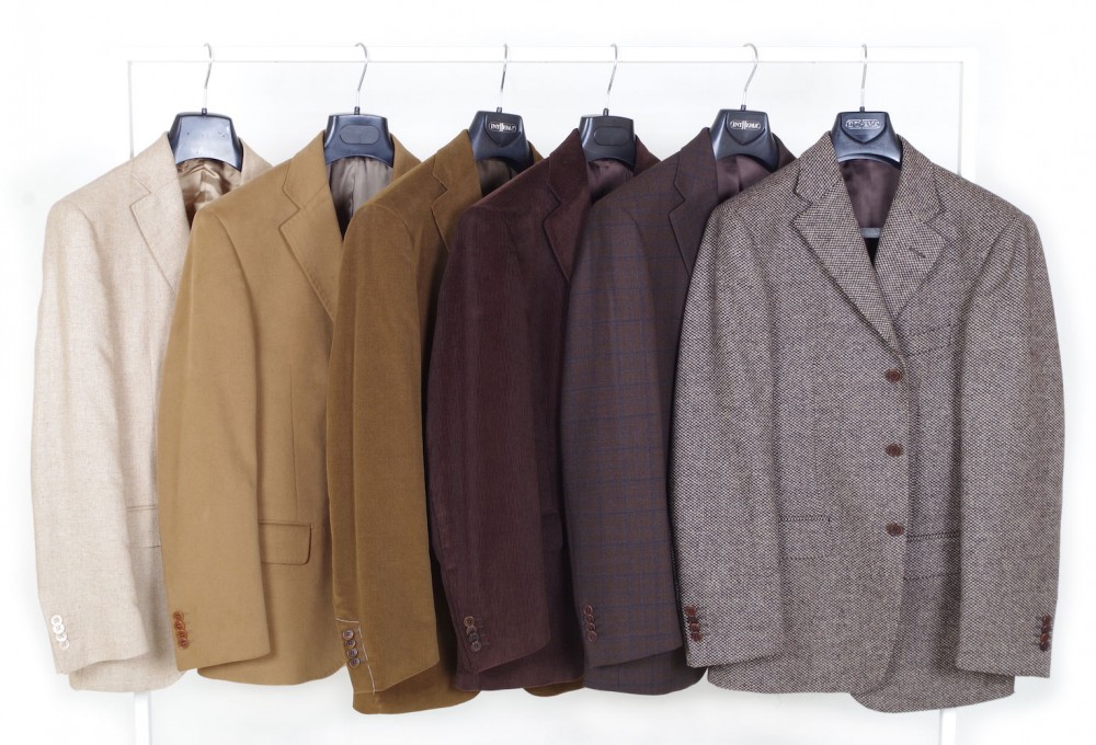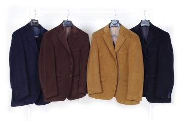 Nuovo lotto di giacche modello classico in pura lana vergine o velluto di cotone disegnate e prodotte in Italia artigianalmente da prestigiose case sartoriali per prestigiosi brand: Valentino, Lebole, Horizon, Fratelli d’Italia di Delfino, Reda, Ermenegildo Zegna, Duca Visconti di Modrone