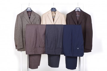 Dalla tg 44 alla tg 58 modelli a due o tre bottoni in fresco di lana adatti all’autunno e all’inverno, filato di lana invernale, velluto di cotone raso o a coste. Vestibilità regolare (drop 6) e mezzo forte (drop 4) in varie tonalità di marrone, cammello, blu, grigio, verde