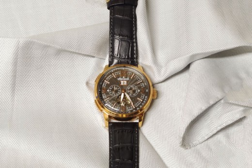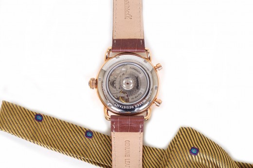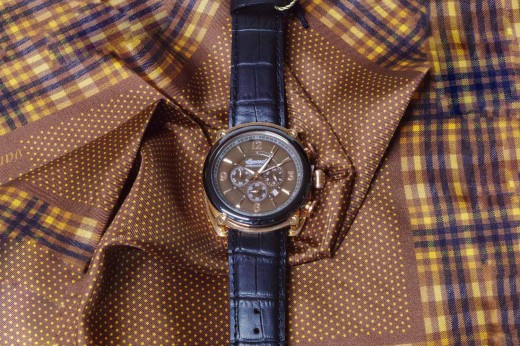 Lotto 24 : orologio cronografo meccanico con datario, cinturino in pelle stampa cocco, cassa color oro rosa e quadrante color pergamena