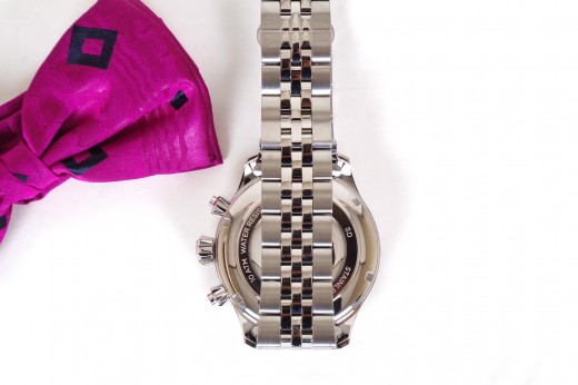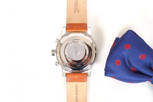 Lotto 32 : orologio cronografo al quarzo con datario, cinturino in cuoio naturale, cassa in acciaio satinato e quadrante color avorio