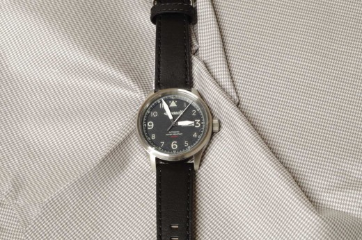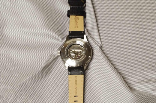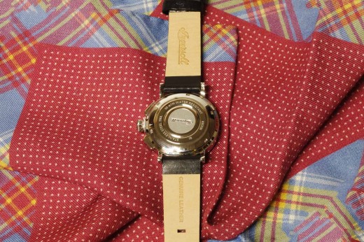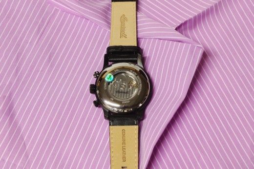 Lotto 27 : orologio meccanico con datario, cinturino in pelle color castagna, cassa in acciaio nero e quadrante nero