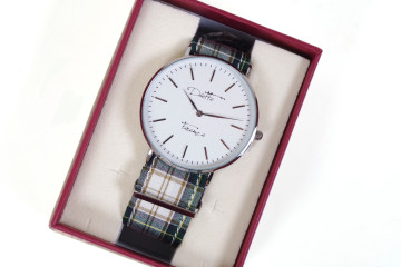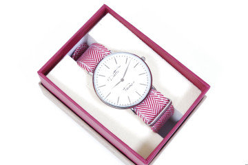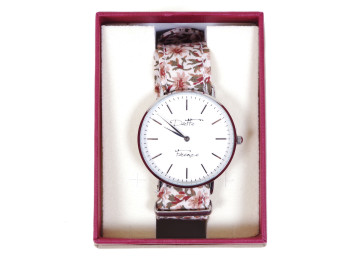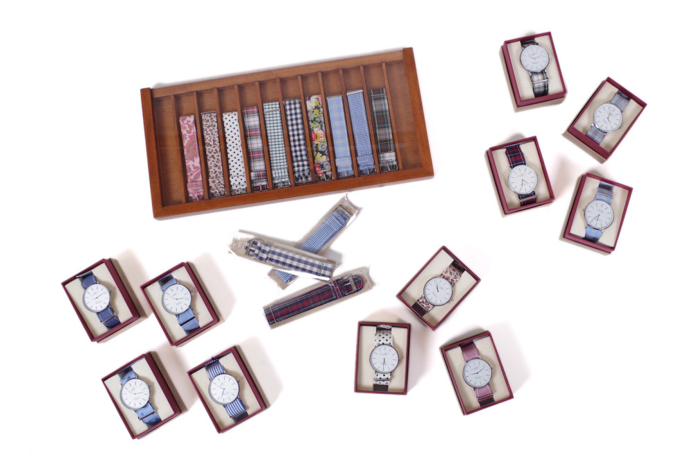 Caratteristico cinturino in cotone intercambiabile e in vendita separatamente, disponibile in vari colori e fantasie per personalizzare il proprio look in ogni occasione